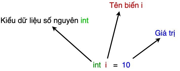 Ví dụ về khai báo biến trong java:
