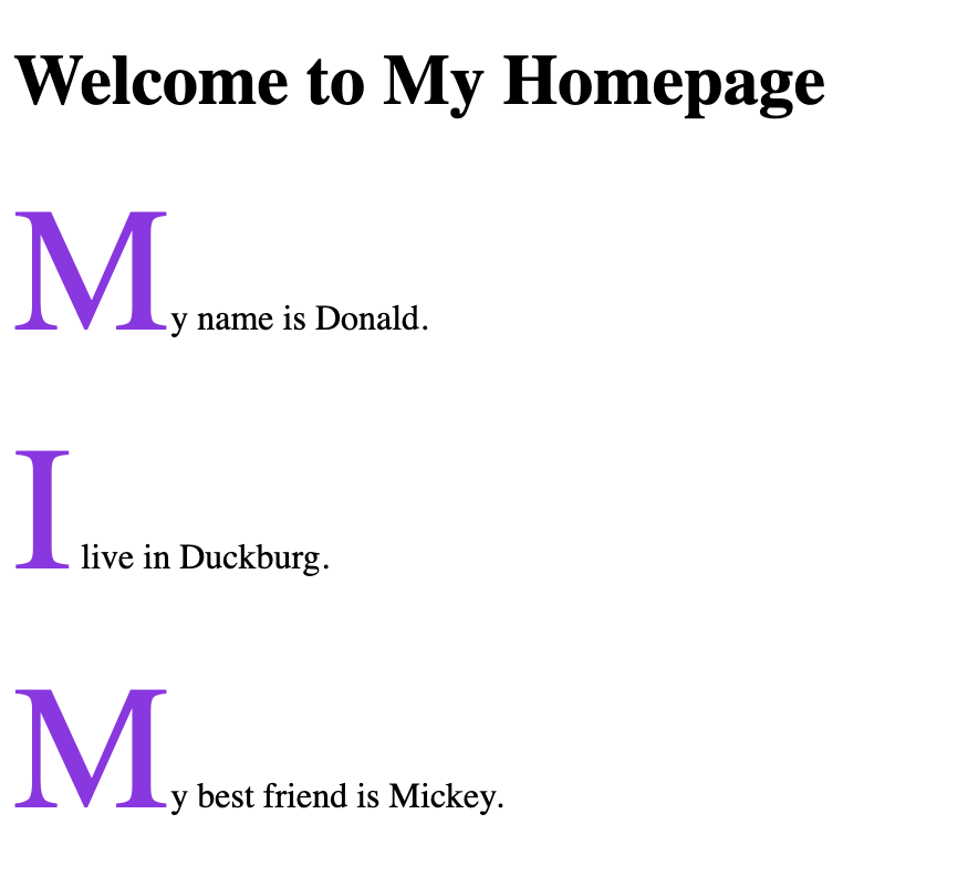 <h1>Welcome to My Homepage</h1>
