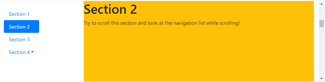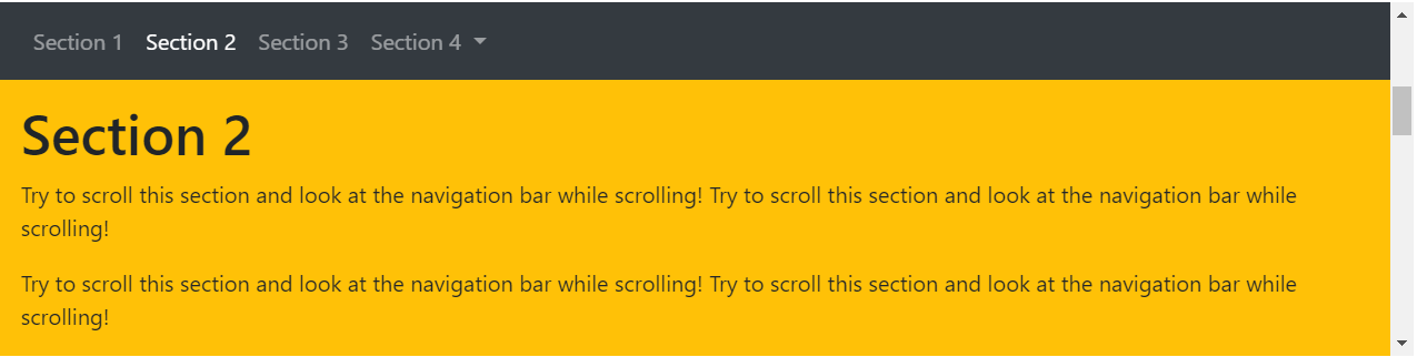 Lưu ý rằng phần tử scrollable có ID phải trùng với các link bên trong list items của navbar (<div id="section1"> với <a href="#section1">).