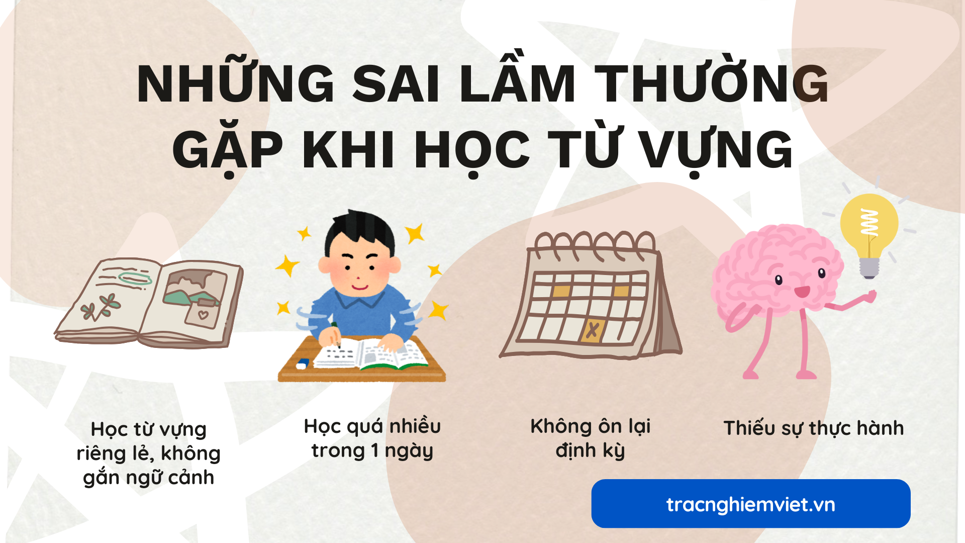Bài viết này sẽ hướng dẫn bạn các phương pháp học từ vựng hiệu quả nhất, được khoa học chứng minh, kết hợp với các công cụ hiện đại giúp tối ưu quá trình ghi nhớ. Đồng thời, bạn cũng sẽ khám phá những lỗi sai phổ biến khi học từ và cách khắc phục triệt để. Cuối bài, mình sẽ giới thiệu thêm các nguồn tài liệu học từ vựng miễn phí, bao gồm cả tại Trắc Nghiệm Việt, giúp bạn bắt đầu ngay hôm nay.