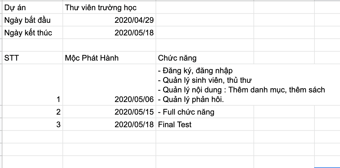 => 1 project => milestone (mốc phát hành (release)) => gửi cho KH (Trần Văn Điệp)
