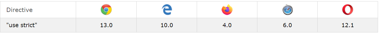 Cú pháp, cho việc khai báo chế độ nghiêm ngặt, được thiết kế để tương thích với phiên bản cũ hơn của JavaScipt.