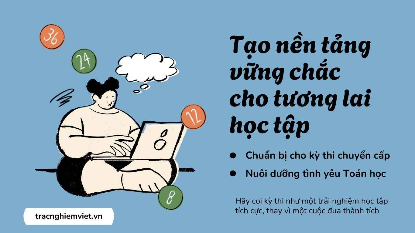 Phụ huynh hãy đồng hành cùng con, lựa chọn kỳ thi phù hợp và tạo cho trẻ một tâm lý thoải mái, tích cực. Đồng thời, đừng quên tận dụng các nguồn tài liệu ôn luyện trực tuyến uy tín như Trắc Nghiệm Việt – nơi cung cấp kho đề thi và bài tập Toán phong phú từ lớp 1 đến lớp 5. Với sự chuẩn bị kỹ lưỡng và đồng hành tận tâm, chắc chắn học sinh tiểu học sẽ tự tin hơn, yêu thích môn Toán và đạt nhiều thành công trong hành trình học tập của mình.