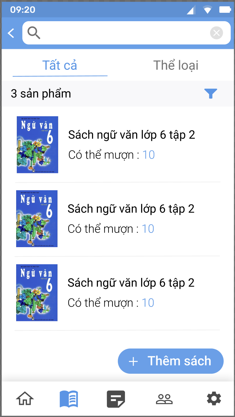 Màn hình quản lý sách - dự án quản lý thứ viện - Dart/Flutter
