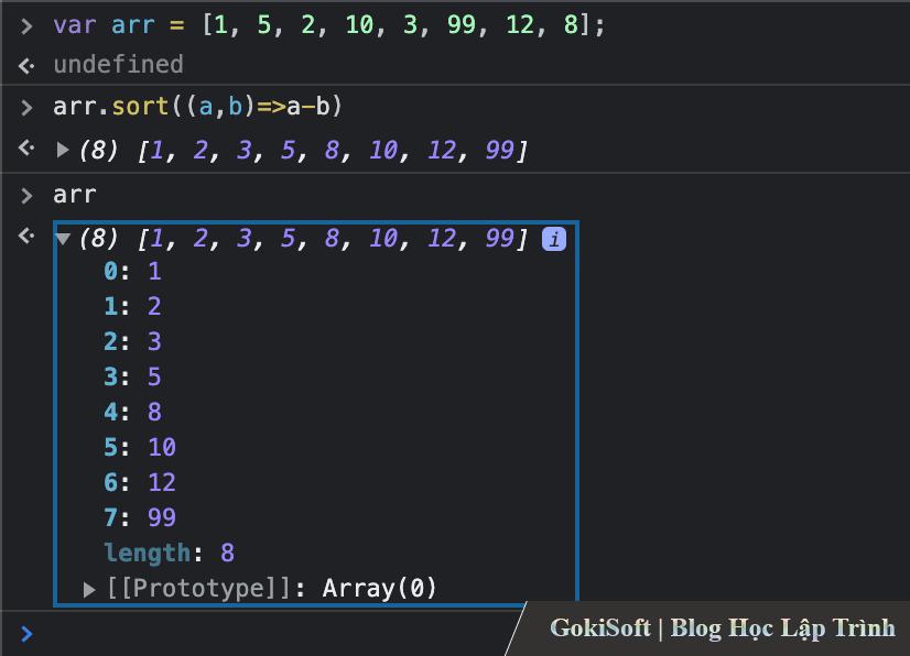 Sắp xếp mảng theo thứ tự tăng dần