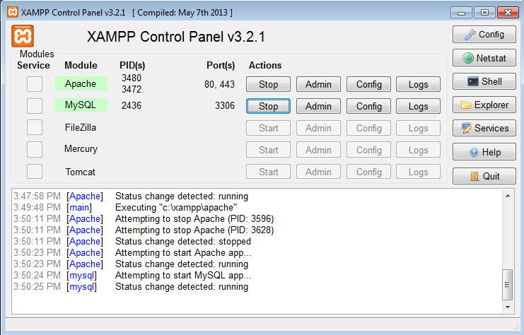 Bây giờ bạn hãy vào thư mục c:\xampp và mở file xampp-panel.exe lên để bật bảng điều khiển của XAMPP.