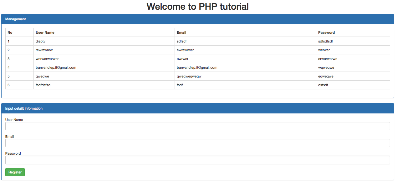 Yêu cầu: Sử dụng GET/POST khi người dùng click vào button Register, Sử dụng Session để quản lý danh sách người dùng