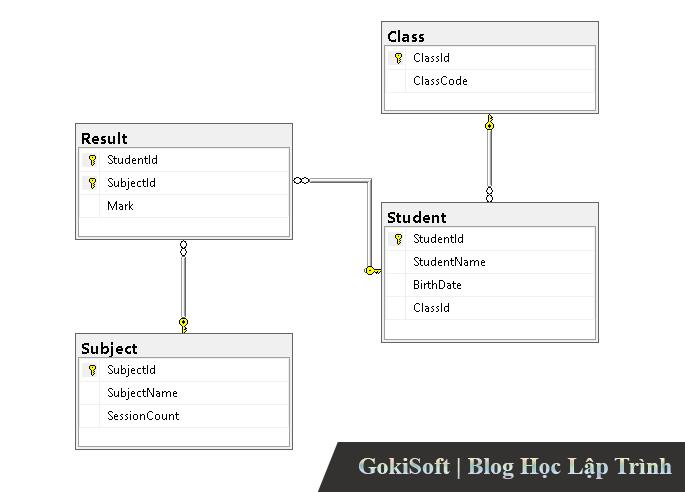ClassId int -- 1 sinh vien chi dc hoc 1 lop