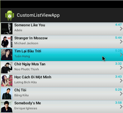 (Chú ý : tạo một list các hình ảnh về các bài hát -> luu vào folder drawable của dự án)