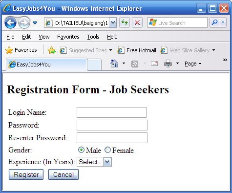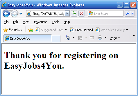 Khi người dùng click nút Register thì trang sẽ đc chuyển sang trang thankyou.html