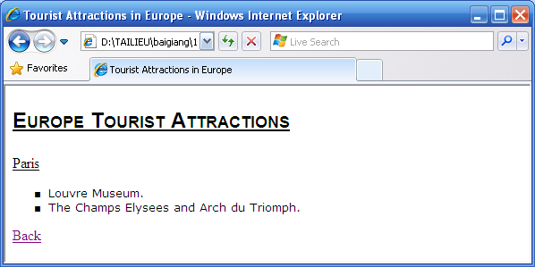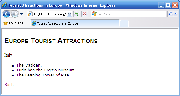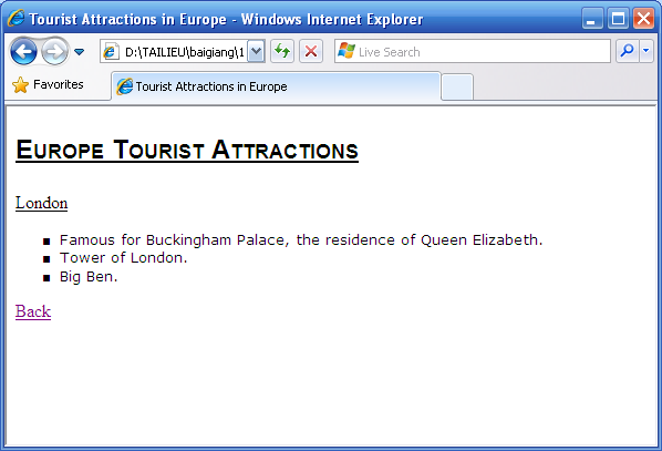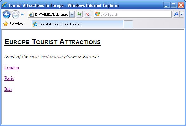 Xây dựng 1 ứng dụng web gồm có 4 trang: TouristAttractions.html, London.html, Paris.html, Italy.html .