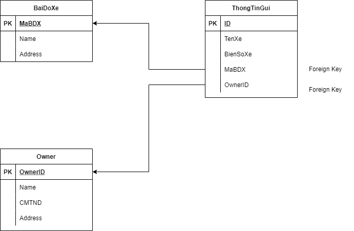 ------ Nhan xet: ThongTinGui, BaiDoXe, Owner