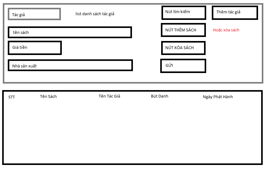 Khi người dùng click vào NÚT TÌM KIẾM -> hiển thị toàn bộ quấn sách của tác giả ra table theo định dạnh trên