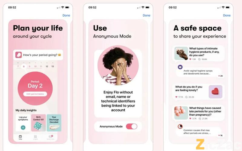 Ví dụ về ứng dụng sức khỏe phụ nữ có thiết kế UX UI đẹp truyền tải tinh thần tốt.